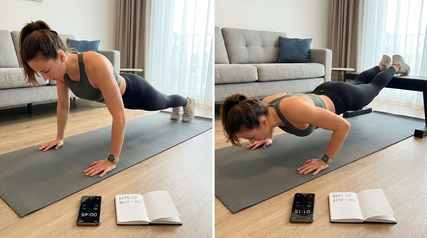 - Add variations: Many bodyweight exercises have variations that can make them more challenging. For example, you can progress from regular push-ups to decline push-ups or diamond push-ups.