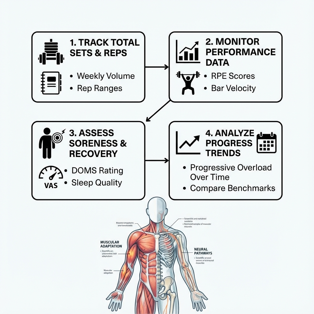 - Add 2–3 sets per muscle per week gradually as long as performance and recovery stay solid.