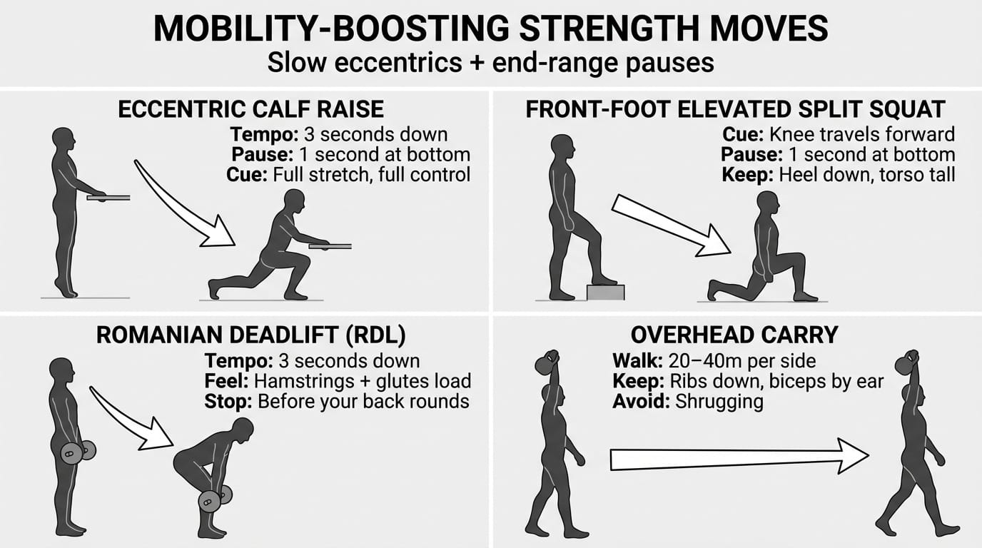 Most people chase flexibility with more stretching. That can help — but there’s a faster, more “sticky” route: get strong in bigger ranges of motion.